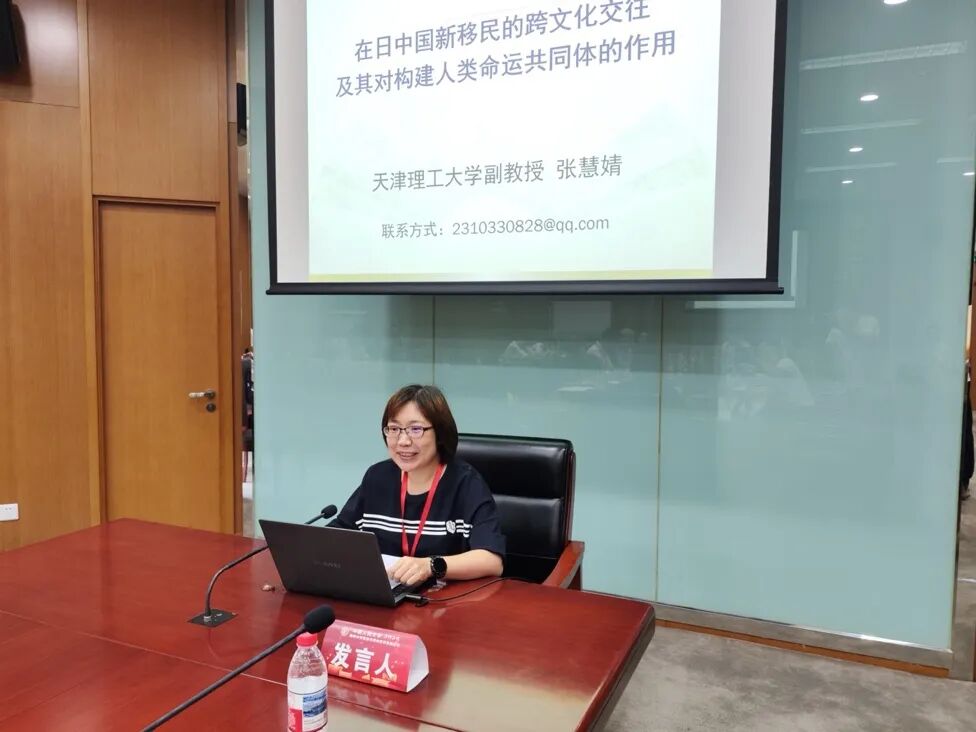 天津理工大学社会发展学院副教授张慧婧以《在日中国新移民的跨文化交往及其对构建人类命运共同体的作用》为题,基于田野调查分享了她的跨文化考察。张教授重点介绍了田野中发现的创新性实践,并展示了通过文化互鉴和共享理念推动人类命运共同体构建的生动案例。